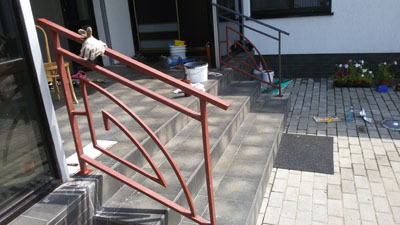 • Если на перила, изготовленные из нержавеющей стали попала в процессе эксплуатации краска, потребуется применение растворителей, но их использование должно быть аккуратным. После удаления краски важно смыть растворители, если его оставить на поверхности, то его наличие повредит верхний слой материала;